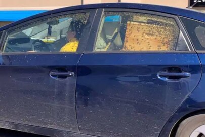 നൂറു കണക്കിന് തേനീച്ചകളെ കാറിനകത്താക്കി ഡ്രൈവ് ചെയ്തു പോകുന്ന സ്ത്രീയുടെ വിചിത്രമായ ചിത്രമാണ് ഇപ്പോൾ ഇന്റര്നെറ്റിലെ ചൂട൯ ചർച്ച. ഞായറാഴ്ച്ചയാണ് അമേരിക്കക്കാരിയായ സ്ത്രീ കാറിന്റെ പി൯വശത്തെ സീറ്റിൽ തേനീച്ചക്കൂടുമായി തന്റെ ടൊയോട്ട പ്രിയസ് കാറോടിച്ചു പോകുന്ന ചിത്രം സോഷ്യൽമീഡിയയിൽ പ്രത്യക്ഷപ്പെട്ടത്. കാറിന്റെ വിന്റോകളിൽ നിറയെ തേനീച്ചകൾ തിങ്ങി നിൽക്കുന്നതു കാണാം.