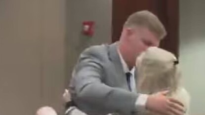 ഭർത്താവിന്റെ കൊലപാതകിക്ക് മാപ്പ് നൽകി കോടതി മുറിയിൽ വച്ച് ആലിംഗനം ചെയ്ത യുവതി; വൈറൽ വീഡിയോ
