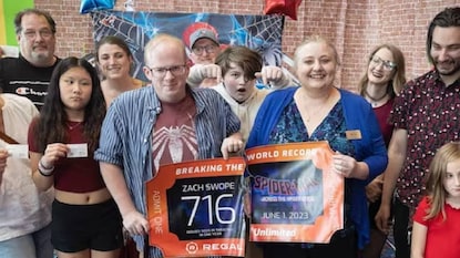 യുഎസിലെ പെന്സില്വാനിയ സ്വദേശിയായ 32 കാരന് ഒരു വര്ഷത്തിനുള്ളില് ഏറ്റവും കൂടുതല് സിനിമകള് കണ്ട്ലോക റെക്കോര്ഡ് സ്വന്തമാക്കിയിരിക്കുകയാണ്. സക്കറിയ സ്വോപ്പ് എന്ന യുവാവാണ് ഈ അസാധാരണ നേട്ടം കൈവരിച്ചിരിക്കുകയാണ്. 2022 മെയ് മുതല് 2023 മെയ് വരെയുള്ള 12 മാസ കാലയളവില്, സ്വോപ്പ് തന്റെ സമയത്തിന്റെ ഭൂരിഭാഗവും റീഗല് സിനിമ തിയേറ്ററിലാണ് ചെലവഴിച്ചത്. മൊത്തം 777 സിനിമകളാണ് ഈ കാലയളവില് അദ്ദേഹം കണ്ടത്. സ്വോപ്പിന്റെ ഈ മൂവി മാരത്തോണില് വൈവിധ്യമാര്ന്ന സിനിമകള് ഉള്പ്പെടുന്നു, മിനിയന്സ്: റൈസ് ഓഫ് ഗ്രുവില് എന്ന സിനിമ കണ്ടാണ് സക്കറിയ ഈ ദൗത്യം തുടങ്ങിയത്, ഇന്ത്യാന ജോണ്സ്, ഡയല് ഓഫ് ഡെസ്റ്റിനി എന്നീ സിനിമകള് കണ്ടാണ് അവസാനിപ്പിച്ചത്.