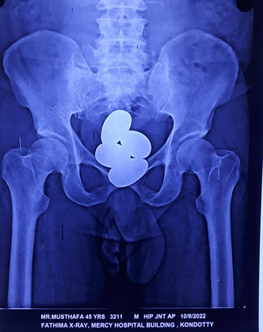 തുടര്ന്ന് മുസ്തഫയെ കൊണ്ടോട്ടിയിലുള്ള മേഴ്സി ആശുപത്രിയില് എത്തിക്കുക ആയിരുന്നു. മെഡിക്കല് ഓഫീസറുടെ നിര്ദേശാനുസരണം എക്സ്റേ എടുത്ത് പരിശോധിച്ചതോടെ തൊണ്ടി സഹിതം വ്യക്തമായി. വയറിനകത്ത് സ്വര്ണ്ണമടങ്ങിയ 4 കാപ്സ്യൂളുകള് ആണ് എക്സ് റേയിൽ തെളിഞ്ഞത്. ഇയാളില് നിന്നും പിടിച്ചെടുത്ത സ്വര്ണ്ണത്തിന് 992 ഗ്രാം തൂക്കമുണ്ട് (ഏകദേശം 124 പവൻ).