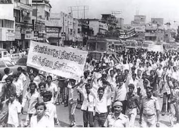1937: തമിഴ്നാട്ടിലെ ഹിന്ദിക്കെതിരായ വിവാദവും പ്രക്ഷോഭങ്ങളും സ്വാതന്ത്ര്യത്തിനു മുൻപ് തുടങ്ങിയതാണ്. 1930-കളിൽ സി രാജഗോപാലാചാരിയുടെ നേതൃത്വത്തിലുള്ള സർക്കാർ സംസ്ഥാനത്തെ സ്കൂളുകളിൽ ഹിന്ദി ഒരു വിഷയമായി അവതരിപ്പിക്കാൻ തീരുമാനിച്ചത് മദ്രാസ് പ്രവിശ്യയിൽ ഉടനീളം പ്രക്ഷോഭങ്ങൾ ഉണ്ടാകാൻ കാരണമായി.