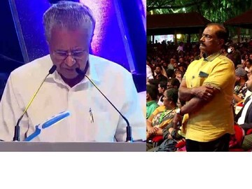 'ഞാൻ അദ്ദേഹത്തെ ബഹുമാനിക്കുന്നു'; മുഖ്യമന്ത്രിയുടെ പ്രസംഗത്തിന് എഴുന്നേറ്റ് നിന്ന് ആദരവ് പ്രകടിപ്പിച്ച് ഭീമൻ രഘു