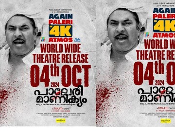 മലയാളികളുടെ പ്രിയ താരം മമ്മൂട്ടി മൂന്ന് വേഷങ്ങളിലെത്തി നിറഞ്ഞാടിയ ചിത്രം 'പാലേരിമാണിക്യം ഒരു പാതിരാക്കൊലപാതകത്തിന്റെ കഥ' വീണ്ടും തിയേറ്ററുകളിലെത്തുന്നു എന്ന വാർത്തകൾ സിനിമാപ്രേമികൾ ഏറെ ആവേശത്തോടെയാണ് സ്വീകരിച്ചത്. ഏറ്റവും പുതിയശബ്ദ സാങ്കേതിക മികവോടെ സെപ്റ്റംബർ ഇരുപതിന് ചിത്രം പ്രദർശനത്തിനെത്തുമെന്നായിരുന്നു അണിയറപ്രവർത്തകർ അറിയിച്ചത്. എന്നാൽ സിനിമയുടെ റിലീസ് മാറ്റിയിരുന്നു. ഇപ്പോഴിതാ ചിത്രത്തിന്റെ പുതിയ റിലീസ് തീയതി മമ്മൂട്ടി തന്നെ പ്രഖ്യാപിച്ചിരിക്കുകയാണ്. ഒക്ടോബർ നാലിനാണ് ചിത്രം റിലീസ് ചെയ്യുന്നത്.