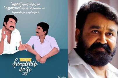 'എടാ' എന്നു വിളിച്ചാൽ 'എന്താടാ' എന്നു വിളികേൾക്കാൻ ആരെങ്കിലുമുള്ളത് നല്ലതാ! എന്നെഴുതിയ ദാസന്റെയും വിജയന്റെയും ചിത്രമുള്ള ഫ്രെണ്ട്ഷിപ്പ് ഡേ കാർഡ് പങ്കുവെച്ചുകൊണ്ടാണ് മോഹൻ ലാൽ ആശംസകൾ നേർന്നിരിക്കുന്നത്.