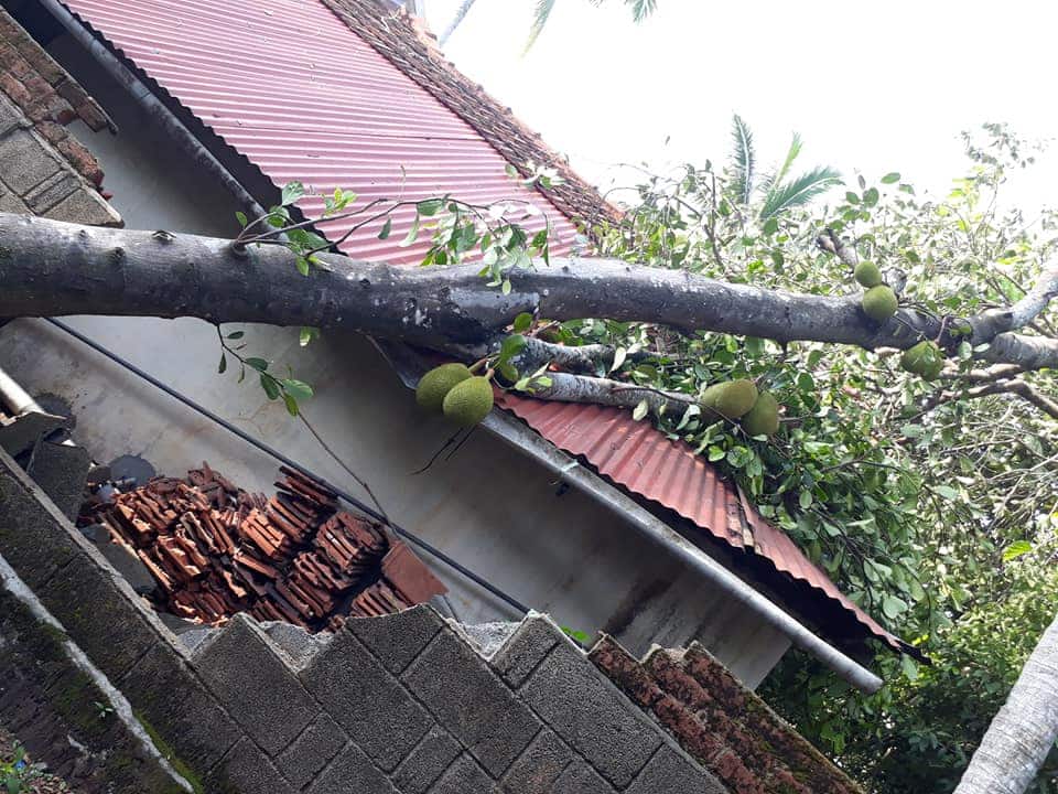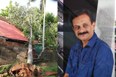 ചൊവ്വാഴ്ച ഉണ്ടായ കനത്ത കാറ്റിലും മഴയിലും അടുത്ത വീട്ടിലെ പ്ലാവ് വീടിനു മുകളിലേക്ക് വീഴുകയായിരുന്നു. വീടിന്റെ ഒരു ഭാഗം ഭാഗികമായി തകരുകയായിരുന്നു. അതേസമയം, വീടിനു മുകളിൽ വീണ മരം ബുധനാഴ്ച വൈകുന്നേരത്തോടെ മാറ്റിയതായി അദ്ദേഹം അറിയിച്ചു.
