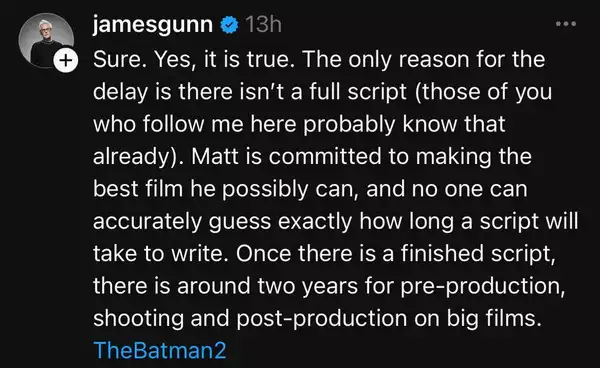 ചിത്രത്തിന്റെ റിലീസ് വൈകുമെന്ന് അറിയിച്ചിരിക്കുകയാണ് ഡിസി സ്റ്റുഡിയോസിന്റെ കോ-ചെയർമാനായ ജെയിംസ് ഗൺ