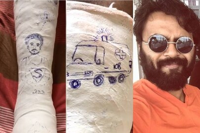 Actor Sanju Sivaram sets storyboard on a crippled leg | ഒടിഞ്ഞ കാൽ സഞ്ജുവിന്റേതാണോ എന്നറിയാൻ ആഗ്രഹിക്കുന്നവർക്കുള്ള മറുപടിയും ഉണ്ട്
