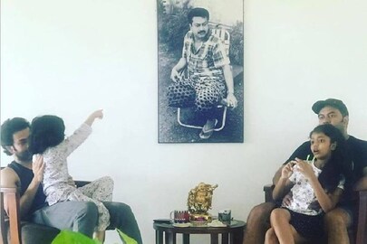 അച്ഛൻ ഇന്ദ്രജിത്തിന്റെ മടിയിൽ നക്ഷത്ര, പൃഥ്വിരാജിന്റെ മടിയിൽ അലംകൃത. അച്ഛച്ചൻ സുകുമാരന്റെ ചിത്രത്തിലേക്ക് അഞ്ചു വയസ്സുകാരി അല്ലിമോൾ കുഞ്ഞിക്കൈ നീട്ടിയിരിക്കുന്നു. മൂന്നു തലമുറയുടെ അപൂർവ്വ കൂടിച്ചേരലിൽ ഇവരുടെ മുത്തച്ഛൻ സുകുമാരൻ ഒപ്പമില്ലെങ്കിലും ഒരു ചിത്രമായി അവർക്കൊപ്പം കൂടുന്നു. പൃഥ്വിരാജ് ഫേസ്ബുക്കിൽ പോസ്റ്റ് ചെയ്ത ചിത്രമാണിത്. ഈ അസുലഭ നിമിഷം ക്യാമറയിൽ പകർത്തിയത് സുപ്രിയ മേനോൻ.