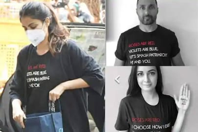 'റോസാപൂക്കൾ ചുവപ്പാണ്, വയലറ്റുകൾ നീലയാണ്, നമുക്ക് പുരുഷാധിപത്യത്തെ തകർക്കാം, ഞാനും നീയും' - ചൊവ്വാഴ്ച നാർകോടിക് കൺട്രോൾ ബ്യൂറോയുടെ മുമ്പിൽ ഹാജരാകാൻ എത്തിയ റിയ ധരിച്ച ടി-ഷർട്ടിലെ വാചകങ്ങളാണ് ഇത്.