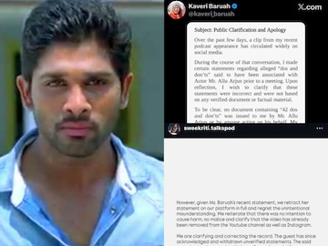 Summary: Journalist Kaveri Baruah has retracted her '42 strict rules' allegations against Allu Arjun. Kaveri's controversial revelation came on the podcast 'Sweekriti Talks' the other day. Kaveri had said that before meeting Allu Arjun, his team gave her a list of 42 suggestions.