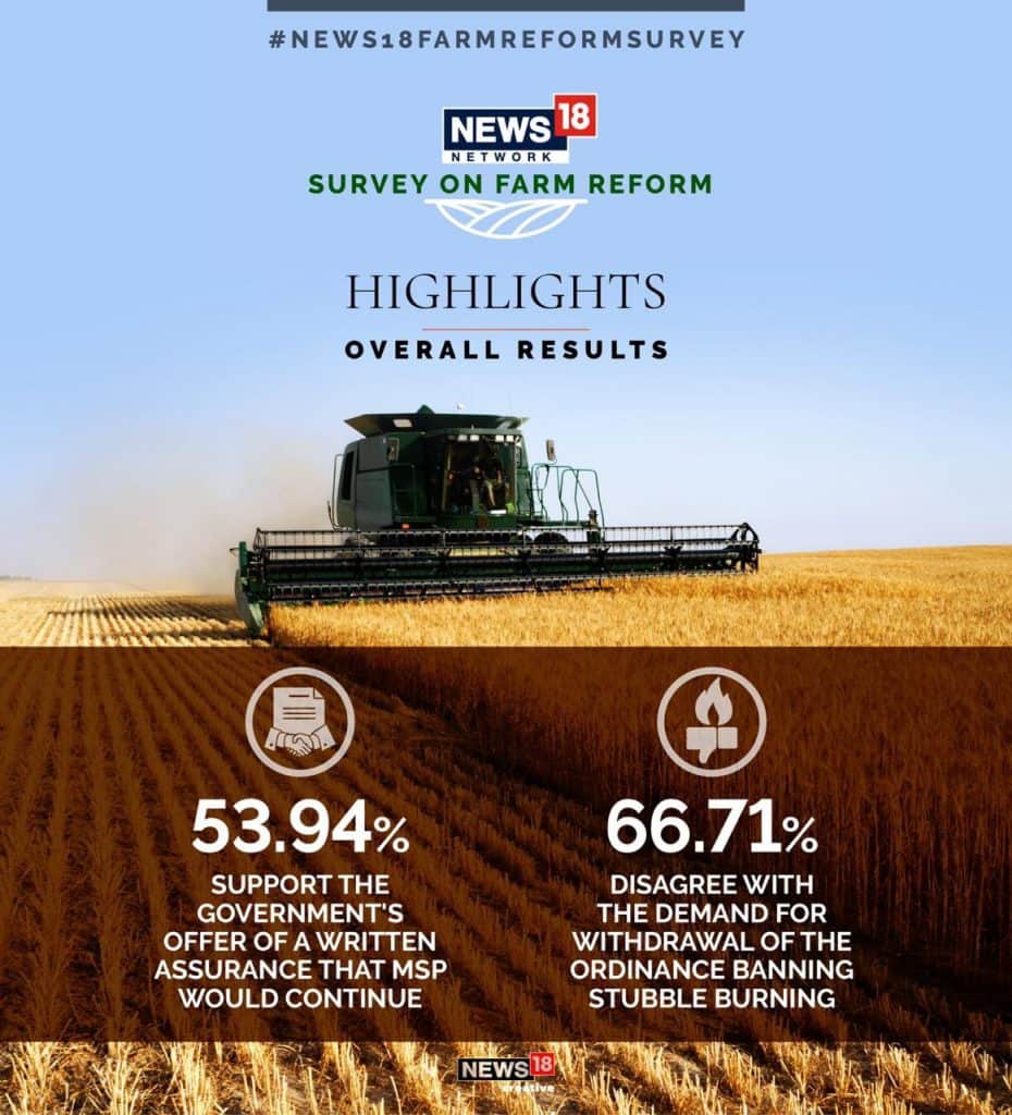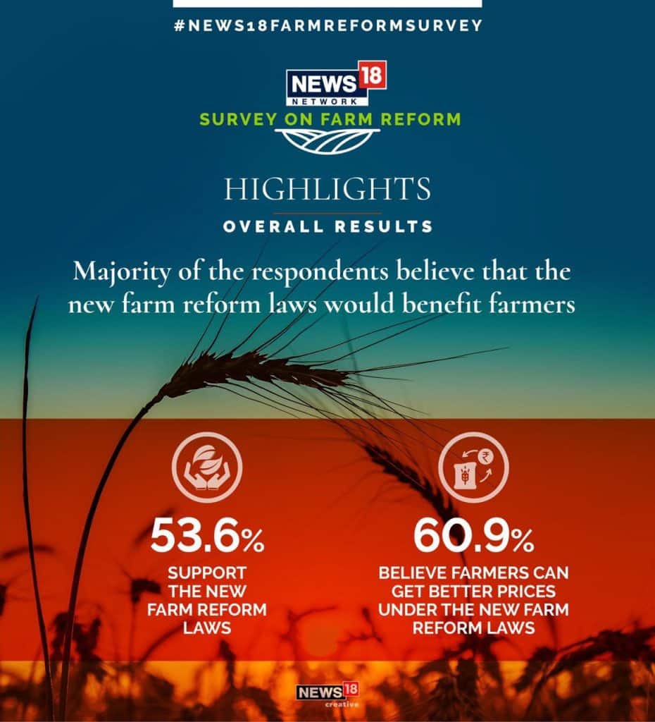 News18 survey on Farm Reforms | 'കാർഷിക പരിഷ്കരണ നിയമങ്ങൾ കർഷകർക്ക് ഗുണം ചെയ്യും; പ്രതിഷേധം പിൻവലിക്കണം'; ന്യൂസ് 18 ദേശീയ സർവേ ഫലം