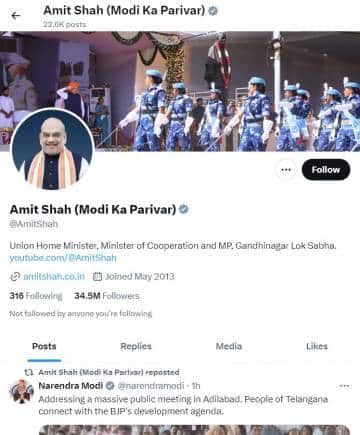 കേന്ദ്രമന്ത്രിമാരായ അമിത് ഷാ, പിയൂഷ് ഗോയൽ, ബിജെപി ദേശീയ അധ്യക്ഷൻ ജെ പി നഡ്ഡ തുടങ്ങിയവര് സോഷ്യൽ മീഡിയ പ്ലാറ്റ്ഫോമായ എക്സിൽ പേരു തിരുത്തി Modi Ka Parivar കൂടി ചേർത്തു
