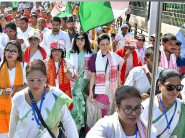 ത്രിപുരയിൽ ബിജെപിയെ തൂത്തെറിയാൻ സിപിഎമ്മും കോൺഗ്രസും ദേശീയ പതാകയുമായി മൂന്ന് കിലോമീറ്റർ റാലി