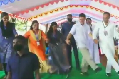കന്യാകുമാരി ജില്ലയിലെ ഒരു സ്കൂളില് വിദ്യാര്ഥികള്ക്കൊപ്പം നൃത്തം ചെയ്യുന്ന രാഹുല് ഗാന്ധിയുടെ വീഡിയോ സാമൂഹ്യമാധ്യമങ്ങളില് വൈറലായിരിക്കുകയാണ്. കന്യാകുമാരി ജില്ലയിലെ മുളകുമൂട് സെന്റ് ജോസഫ്സ് മെട്രിക്കുലേഷന് ഹയല് സെക്കന്ഡറി സ്കൂളിലെ വിദ്യാര്ഥികള്ക്കൊപ്പമാണ് രാഹുല് ഗാന്ധി നൃത്തം ചെയ്തത്. വേദിയില് കൈകള് കോര്ത്ത് വിദ്യാര്ഥികള്ക്കും ചില നേതാക്കള്ക്കള്ക്കുമൊപ്പം നൃത്തം ചെയ്യുന്ന വീഡിയോ ആണ് പുറത്തുവന്നത്. വിദ്യാര്ഥിനികളുടെ ഇംഗ്ലീഷ് ഗാനത്തിനൊപ്പമാണ് രാഹുല് ഗാന്ധി ചുവടുകള് വെച്ചത്.