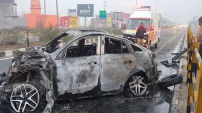 അപകടത്തെ തുടർന്ന് കാർ പൂർണമായും കത്തി നശിച്ചു