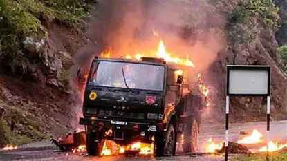 VIDEO | Indian Army vehicle catches fire in Jammu and Kashmir’s Poonch sector. More details are awaited. pic.twitter.com/E4gyvthM54