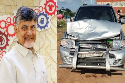 തെലുങ്ക് ദേശം പാര്ട്ടി പ്രസിഡന്റും മുന് അന്ധ്രാപ്രദേശ് മുഖ്യമന്ത്രിയുമായ എന്. ചന്ദ്രബാബു നായിഡുവിന്റെ വാഹനവ്യൂഹത്തിന് അപകടം. വാഹനവ്യൂഹത്തിലെ കാറുകള് പരസ്പരം കൂട്ടിയിടിക്കുകയായിരുന്നു. എന്നാൽ അപകടത്തില്നിന്ന് ചന്ദ്രബാബു നായിഡു കഷ്ടിച്ച് രക്ഷപെട്ടു.