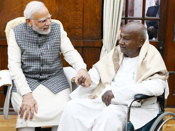 മുൻ പ്രധാനമന്ത്രി ദേവഗൗഡ പാർലമെന്റിൽ വെച്ച് പ്രധാനമന്ത്രി നരേന്ദ്ര മോദിയെ കണ്ടു