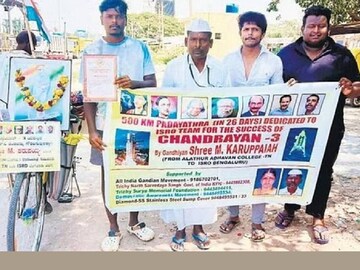 ചന്ദ്രയാന്-3; ഐഎസ്ആര്ഒ ശാസ്ത്രജ്ഞരെ അഭിനന്ദിക്കാന് 26 ദിവസം കാല്നട യാത്രയുമായി ഗാന്ധിയൻ