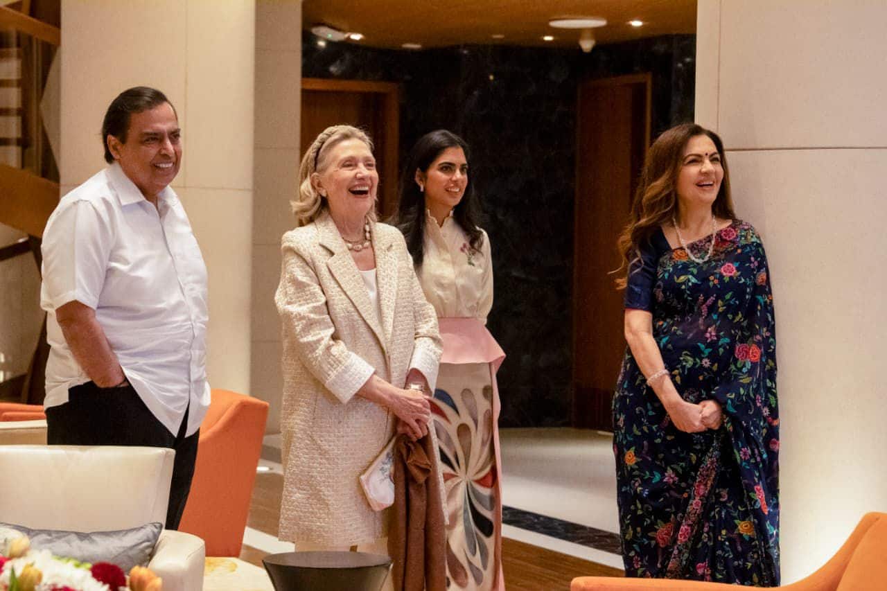 റിലയൻസ് ഇൻഡസ്ട്രീസ് ലിമിറ്റഡ് സിഎംഡി മുകേഷ് അംബാനി, ഭാര്യ നിത, മകൾ ഇഷ എന്നിവർ മുൻ യുഎസ് സ്റ്റേറ്റ് സെക്രട്ടറി ഹിലരി ക്ലിന്റണ് മുംബൈയിലെ തങ്ങളുടെ വസതിയിൽ ആതിഥ്യമരുളി. സൗഹൃദത്തിന്റെയും സംഭാഷണങ്ങളുടെയും കലയോടും സംസ്കാരത്തോടുമുള്ള സ്നേഹത്തിന്റെയും ആഘോഷമായിരുന്നു ആ സായാഹ്നമെന്ന് നിത മുകേഷ് അംബാനി കൾച്ചറൽ സെന്ററിന്റെ (NMACC) ഇൻസ്റ്റാഗ്രാം പോസ്റ്റ് വ്യക്തമാക്കി. നിത അംബാനിയോടൊപ്പം ഹിലരി ക്ലിന്റൺ സിത്താർ സംഗീതം ആസ്വദിക്കുന്ന ചിത്രങ്ങളും ഇതിനോടൊപ്പമുണ്ടായിരുന്നു.അതിഥി ദേവോ ഭവ( നമ്മുടെ അതിഥി ദൈവത്തിന് തുല്യനാണ്) എന്ന് നിത അംബാനി വീഡിയോയിൽ പറഞ്ഞു.
