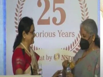 മുംബൈയില് നടന്ന നാഷണല് സെക്യൂരിറ്റീസ് ഡെപ്പോസിറ്ററി ലിമിറ്റഡ് രജതജൂബിലി ആഘോഷത്തിനിടെയാണ് സംഭവം
