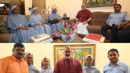 'നന്ദി'; ഛത്തീസ്ഗഡില് അറസ്റ്റിലായ കന്യാസ്ത്രീകൾ രാജീവ് ചന്ദ്രശേഖറുമായി കൂടിക്കാഴ്ച നടത്തി