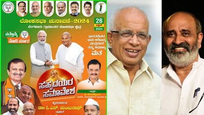 ബെംഗളുരു റൂറലിൽ ബിജെപി സ്ഥാനാർത്ഥിയായ ദേവഗൗഡയുടെ മരുമകൻ ഡോ. മഞ്ജുനാഥയ്ക്ക് സ്വീകരണം നൽകുന്നുവെന്ന പോസ്റ്ററിലാണ് എൽഡിഎഫ് നേതാക്കളുടെ ചിത്രങ്ങളുള്ളത്. ജെഡിഎസിന്റെ സേവാദൾ നേതാവ് ബസവരാജാണ് പോസ്റ്റർ ഇറക്കിയിരിക്കുന്നത്. ജെഡിഎസ് ദേശീയ തലത്തിൽ എൻഡിഎക്ക് ഒപ്പമാണെങ്കിലും കേരളത്തിൽ ഇടതുമുന്നണിക്കൊപ്പമാണ്.