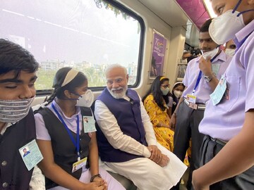 സ്റ്റേഷനില് നിന്ന് വാങ്ങിയ അദ്ദേഹം ഗാര്വെയര് മെട്രോ സ്റ്റേഷനില് നിന്ന് ആനന്ദനഗര് സ്റ്റേഷന് വരെ ട്രെയിനില് യാത്ര ചെയ്തു. പൂനെയിലെ വിവിധ സ്കൂളുകളില് നിന്നുള്ള വിദ്യാര്ത്ഥികളും പ്രധാനമന്ത്രിക്കൊപ്പം ട്രെയിനില് ഉണ്ടായിരുന്നു. കുട്ടികളോട് സംവദിക്കാനും അദ്ദേഹം മറന്നില്ല. പൂനെയിലെ ജനങ്ങള്ക്ക് സൗകര്യവും സുഖപ്രദവുമായ യാത്ര ഉറപ്പാക്കുന്നു എന്ന് പ്രധാനമന്ത്രി ട്വിറ്ററില് കുറിച്ചു. കുട്ടികള്ക്കൊപ്പം യാത്ര ചെയ്യുന്ന ചിത്രങ്ങളും അദ്ദേഹത്തിന്റെ ഓഫീസ് പങ്കുവെച്ചിട്ടുണ്ട്.