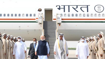 PM Modi at Abu Dhabi| പ്രധാനമന്ത്രി നരേന്ദ്ര മോദി അബുദാബിയിൽ; UAE പ്രസിഡന്റ് നേരിട്ടെത്തി സ്വീകരിച്ചു