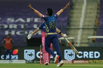 വെറും 20 റൺസ് മാത്രം വഴങ്ങി നാലു വിക്കറ്റെടുത്ത ജസ്പ്രീത് ബൂംറയാണ് രാജസ്ഥാനെ തകർത്തത്.