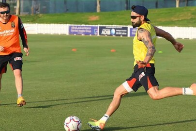 ഐപിഎല്ലിന് മുന്നോടിയായുള്ള പരീശീലനത്തിലാണ് താരങ്ങൾ. വാം അപ് സെഷനിൽ ഫുട്ബോൾ മത്സരങ്ങളും പതിവാണ്. റോയൽ ചാലഞ്ചേഴ്സ് ബാംഗ്ലൂരിന്റെ ഫുട്ബോൾ മത്സരമാണ് ഇപ്പോൾ ക്രിക്കറ്റ് ആരാധകരുടെ ചർച്ച.