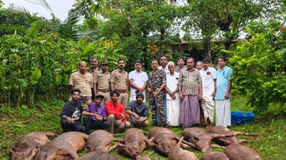 നിലമ്പൂരിൽ പഞ്ചായത്ത് ഏൽപിച്ച ഷൂട്ടർമാർ ശല്യക്കാരായ 12 കാട്ടുപന്നികളെ വെടിവച്ച് കൊന്നു