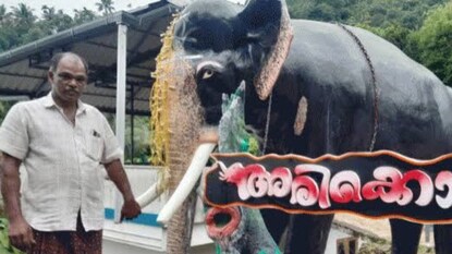 അരിക്കൊമ്പന് ഇടുക്കിയിൽ സ്മാരകം; എട്ടടി ഉയരമുള്ള പ്രതിമ നിർമിച്ചത് കഞ്ഞിക്കുഴിയിലെ വ്യാപാരി