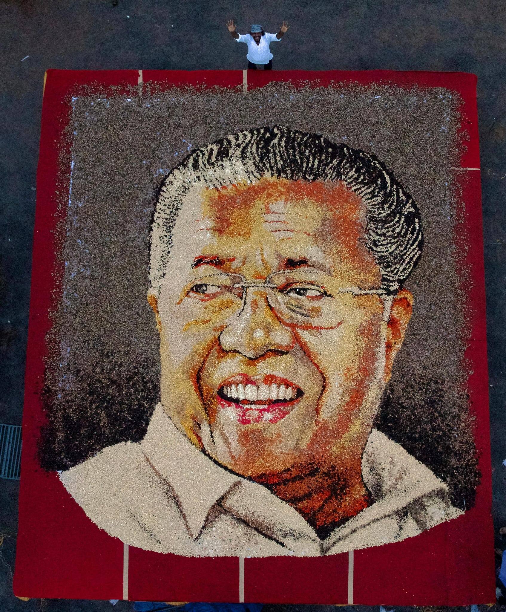 ഏഴ് മണിക്കൂര് സമയമെടുത്താണ് മുഖ്യമന്ത്രിയുടെ ഭീമാകാരമായ ചിത്രം സൃഷ്ടിച്ചെടുത്തതെന്ന് ഡാവിഞ്ചി സുരേഷ് പറഞ്ഞു.