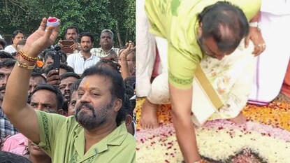 അത്തപ്പൂക്കള വിവാദം; കൊല്ലം മുതുപിലാക്കാട് പാർത്ഥസാരഥി ക്ഷേത്രത്തിലെ പൂക്കളത്തിൽ സിന്ദൂരം പതിപ്പിച്ച് സുരേഷ് ഗോപി