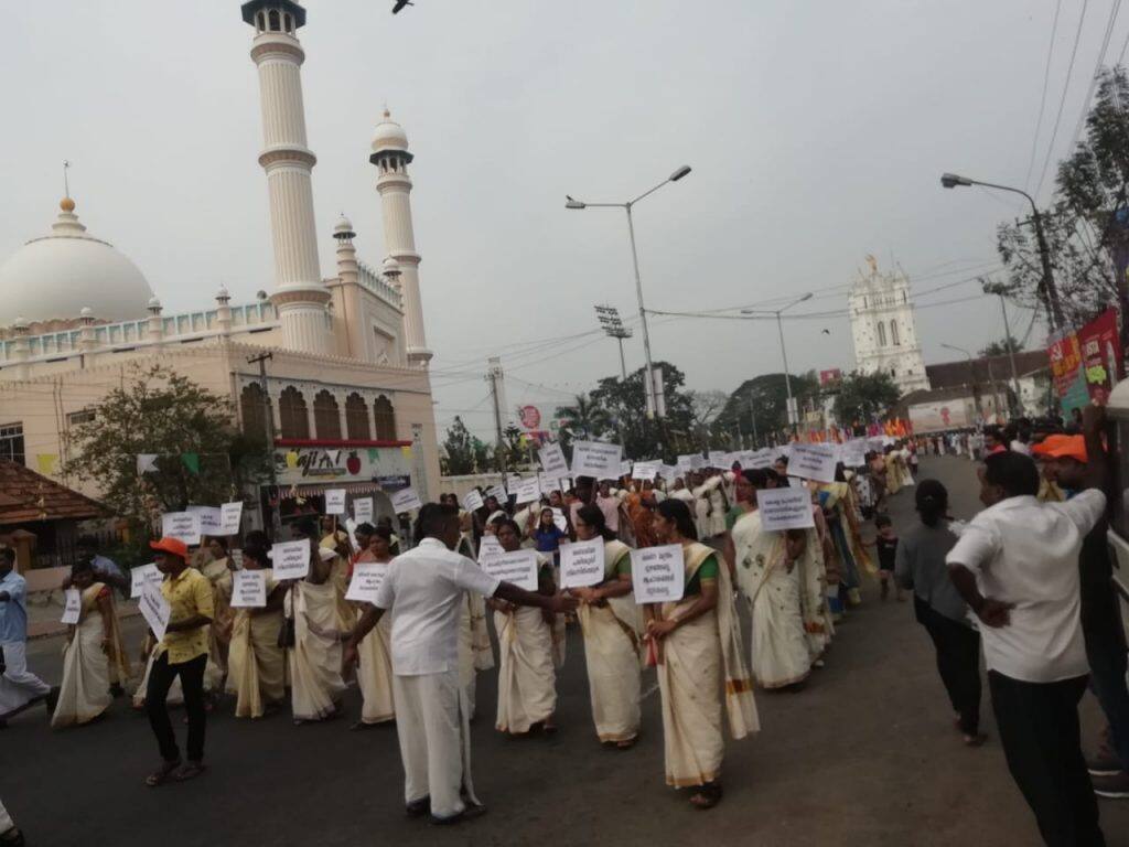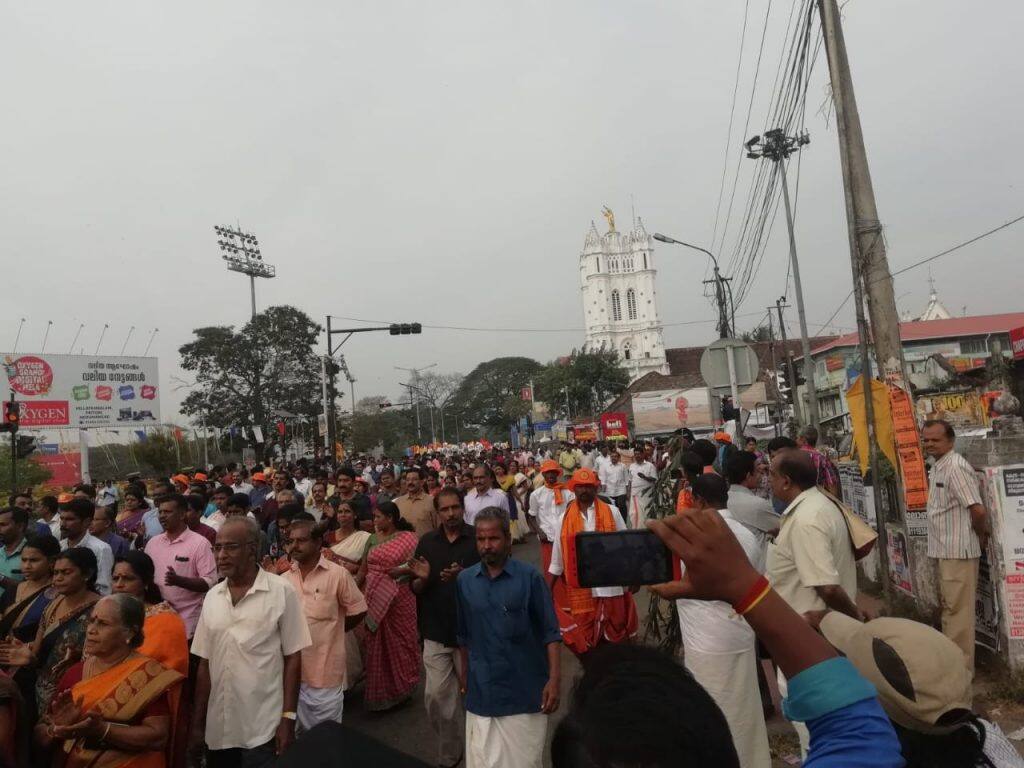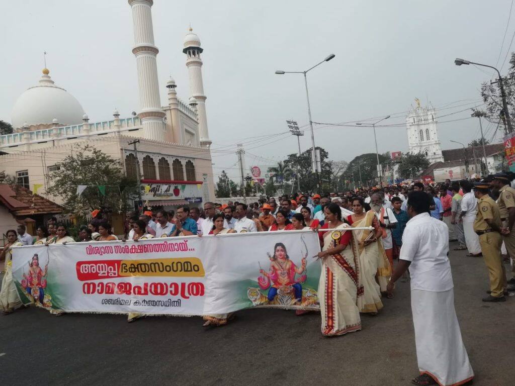 മ്യൂസിയം, പി.എം.ജി എന്നിവിടങ്ങളില് നിന്ന് നാമജപ ഘോഷയാത്രയായാണ് ഭക്തര് പുത്തരിക്കണ്ടത്തേക്ക് എത്തിക്കൊണ്ടിരിക്കുന്നത്.