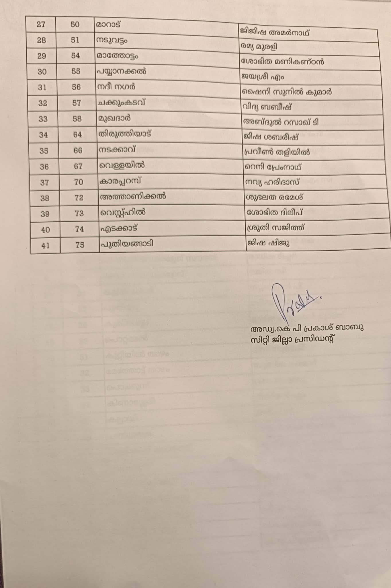 Summary: The BJP has announced its first list of candidates for the Kozhikode Corporation elections. The party released a list of 45 candidates in the first phase. Women are contesting in 28 wards, including those reserved for women. Navya Haridas, the State President of Mahila Morcha and the current Councillor, will contest again from the Karaparamba division this time.