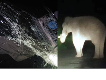 ചക്കക്കൊമ്പനെ പൂപ്പാറയിൽ കാര് ഇടിച്ചു; കാറിലുണ്ടായിരുന്ന 4 പേർക്ക് പരുക്ക്