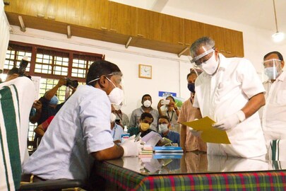 കോവിഡ് പ്രോട്ടോക്കോൾ പാലിച്ചാണ് നാമനിർദ്ദേശ പത്രിക സമർപ്പിക്കാൻ മുഖ്യമന്ത്രി എത്തിയത്. കൈയുറയും മാസ്കും ഫേസ് ഷീൽഡും ധരിച്ച് ആയിരുന്നു മുഖ്യമന്ത്രി നാമനിർദ്ദേ പത്രിക സമർപ്പിക്കാൻ എത്തിയത്. വരണാധികാരിയായ കണ്ണൂർ അസിസ്റ്റന്റ് ഡവലപ്മെന്റ് കമീഷണർ (ജനറൽ) ബെവിൻ ജോൺ വർഗീസിന് മുമ്പാകെയാണ് മുഖ്യമന്ത്രി പത്രിക സമർപ്പിച്ചത്.