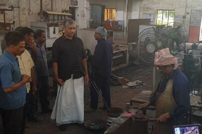 പാലക്കാട്: വിജിലൻസ് ഡയറക്ടറായി ഇരുന്ന് അഴിമതിക്കാരെ വിറപ്പിച്ച ജേക്കബ് തോമസിനെ സർക്കാർ ഒടുവിൽ അരിവാളും കോടാലിയും മൺവെട്ടിയും ഉണ്ടാക്കുന്ന ഷൊർണൂർ മെറ്റൽ ഇൻഡസ്ട്രീസിലേക്കാണ് തട്ടിയത്. ഇന്ന് രാവിലെ പതിനൊന്നരയോടെ ചുമതലയേൽക്കാൻ ഷൊർണൂരെത്തിയ ജേക്കബ് ആദ്യം പോയത് കത്തിയും കോടാലിയും മൺവെട്ടിയുമൊക്കെയുണ്ടാക്കുന്ന നിർമ്മാണശാലയിലേക്ക്. ഇവിടെ ഉണ്ടാക്കുന്ന ആയുധത്തിന്റെ ഗുണമേന്മയെല്ലാം ജേക്കബ് തോമസ് ചോദിച്ചറിഞ്ഞായിരുന്നു സന്ദർശനം.