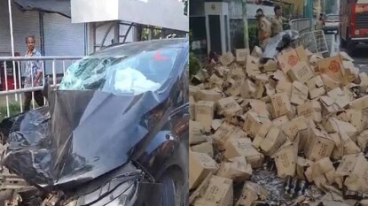 കോഴിക്കോട് മദ്യവുമായെത്തിയ ലോറി കാറുമായി കൂട്ടിയിടിച്ച് ഡ്രൈവർ മരിച്ചു; മദ്യക്കുപ്പികൾ റോഡിൽ ചിതറി