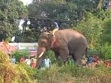 തൃശ്ശൂരിൽ ഇടഞ്ഞ ആന ലോറി മറിച്ചിടാൻ ശ്രമിച്ചു; ശ്രീകൃഷ്ണപുരം വിജയന്റെ കൊമ്പൊടിഞ്ഞു