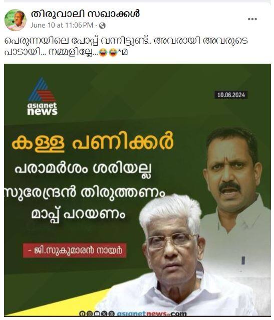 Fact Check: 'കള്ള പണിക്കര്' പരാമർശത്തിൽ കെ. സുരേന്ദ്രൻ മാപ്പ് പറയണമെന്ന് ജി. സുകുമാരൻ നായർ ആവശ്യപ്പെട്ടോ?