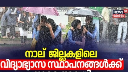 Kerala Weather: കനത്ത മഴ, റെഡ് അലർട്ട്: 4 ജില്ലകളിലെ വിദ്യാഭ്യാസ സ്ഥാപനങ്ങള്ക്ക് ചൊവ്വാഴ്ച അവധി