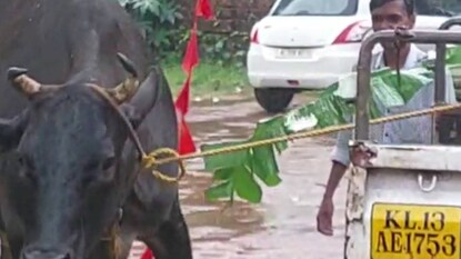 സംഭവമറിഞ്ഞ് ജില്ലാ ഫയർ ഓഫീസർ ബി. രാജിന്റെ നേതൃത്വത്തിൽ അഗ്നിരക്ഷാസേനയും പോലീസും സ്ഥലത്തെത്തി. നാട്ടുകാരുടെ സഹായത്തോടെ ഇവർ പശുവിനെ കെട്ടിയിട്ടു. ജില്ലാ മൃഗാശുപത്രിയിലെ ഡോക്ടർ ഷെറിൻ വി. സാരംഗ് സ്ഥലത്തെത്തി പശുവിനെ പരിശോധനയ്ക്ക് വിധേയമാക്കി.Also Read-ഗുരുവായൂര് ക്ഷേത്രത്തിലെ ഥാര് 43 ലക്ഷത്തിന് ലേലം ചെയ്തു; സ്വന്തമാക്കിയത് വിഘ്നേഷ് വിജയകുമാര്