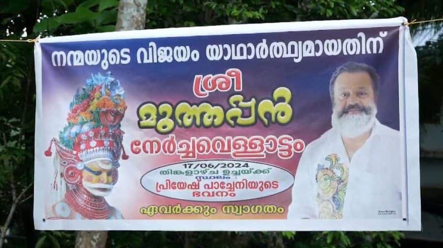 ലോക്സഭ തിരഞ്ഞെടുപ്പിൽ തൃശൂർ മണ്ഡലത്തിൽ നിന്ന് ബിജെപി സ്ഥാനാർഥി സുരേഷ് ഗോപി ജയിക്കാൻ കണ്ണൂർ സ്വദേശി ഒരു നേർച്ച നേർന്നു. സുരേഷ് ഗോപി ജയിച്ചാൽ തന്റെ വീട്ടിൽ മുത്തപ്പൻ വെള്ളാട്ടം കഴിപ്പിക്കാമെന്നായിരുന്നു നേർച്ച. തിരഞ്ഞെടുപ്പ് ഫലം വന്നപ്പോൾ സുരേഷ് ഗോപി വൻ ഭൂരിപക്ഷത്തിൽ ജയിച്ചു, കണ്ണൂർ പാച്ചേനി സ്വദേശി പ്രിയേഷ് നേർച്ചയും നടത്തി.