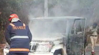 കാസർഗോഡ് ഓടിക്കൊണ്ടിരുന്ന ജീപ്പിന് തീപിടിച്ചു; യാത്രക്കാർ അത്ഭുതകരമായി രക്ഷപ്പെട്ടു