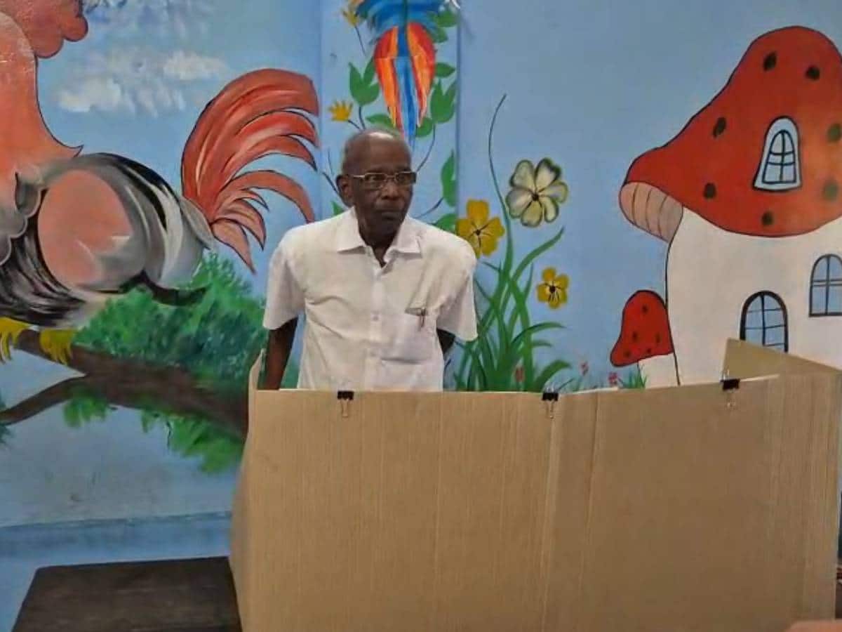 എം എം മണി എംഎൽഎ 20 ഏക്കർ സെർവ് ഇന്ത്യ എൽപിസ്കൂളിൽ രണ്ടാം നമ്പർ ബൂത്തിൽ വോട്ട് ചെയ്യുന്നു