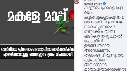 “കുഞ്ഞിനെ ജീവനോടെ മാതാപിതാക്കൾക്കരികിൽ എത്തിക്കുകയെന്നതായിരുന്നു ഞങ്ങളുടെ ലക്ഷ്യം. ആ കുഞ്ഞിനെ ജീവനോടെ മാതാപിതാക്കൾക്കരിലെത്തിക്കാൻ ആയില്ലെന്നത് നിങ്ങളെപ്പോലെ തന്നെ ഓരോ പോലീസുദ്യോഗസ്ഥനും വേദനയാണ്. കാരണം ഞങ്ങളും മാതാപിതാക്കളാണ്. ആ വേദനയാണ് ഈ ആദരാഞ്ജലി പോസ്റ്റിലൂടെ ഞങ്ങൾ പങ്കുവെച്ചിരിക്കുന്നത്”.