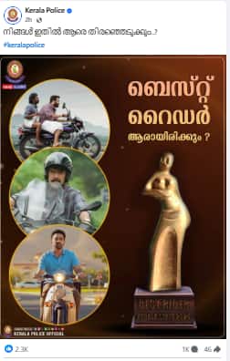 ഹെൽമറ്റ് ധരിച്ചും ധരിക്കാതെയും താരങ്ങൾ; സംസ്ഥാന ചലച്ചിത്ര അവാർഡിനും സൂചന നൽകി കേരള പൊലീസ്